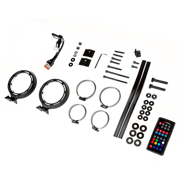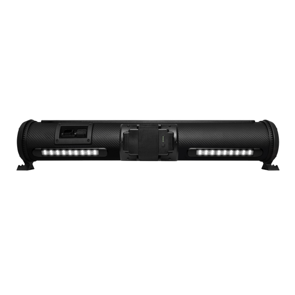 SEB28 サウンドエクストリームエリート バッテリー駆動パワースポーツ サウンドバーは、LED照明と最新のスピーカーにより豊かでパワフルなサウンドを実現します。100%防水、防塵、防汚の8つのマリングレード スピーカーで500ワットの高出力を実現しています。四輪駆動車、SUV、ゴルフカー、バギー、キッチンカー、ヨット、ボートなどに最適です。独自のEcoCast機能を使用すると、最大100台のサウンドエクストリームスピーカーを連携できます。独自のLEDCast照明コントロールで、LED照明や、オプション(近日発売)のLEDライトキットのLEDをカラフルにコントロールできます。