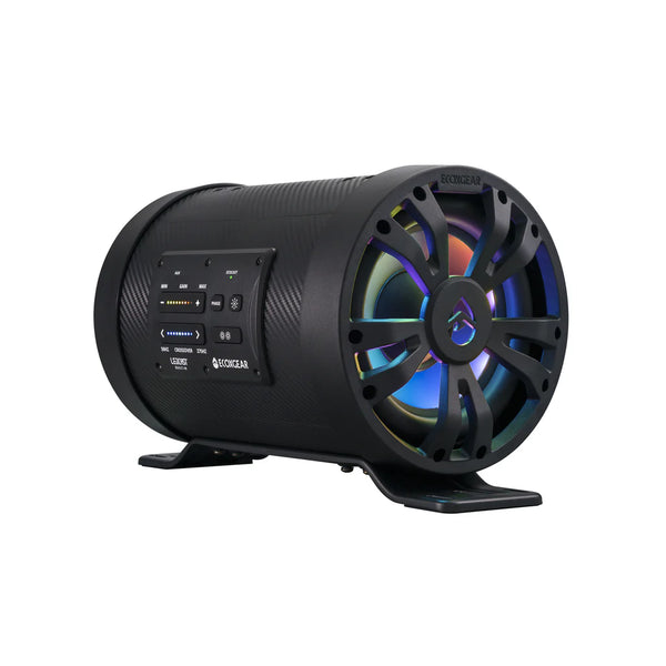 サウンドエクストリームES08i は、ドライブ中などに究極の 重低音を響かせるピーク出力500ワットの8インチ アクティ ブ サブウーファーです。 100% 防水・防塵の筐体は、砂漠の暑さから潮風まで、過酷な環境向けに最適化されています。 あらゆるブランドのサウンドバーと「プラグ アンド プレイ」で接続できるように設計されており、 当社独自のワイヤレスEcoCastプロトコルで、最大100台のサウンドエクストリームスピーカー と連携出来ます。また、SoundExtremeアプリによるLEDCastコントロールを介して、サウン ドと合わせてLED照明を楽しめます。